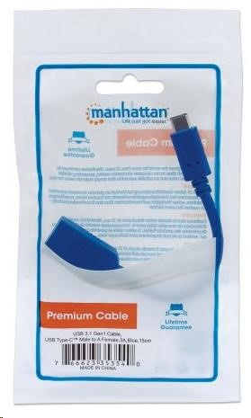 Popis MANHATTAN Kabel USB 2.0 A - USB 3.1 C (F/M), modrý