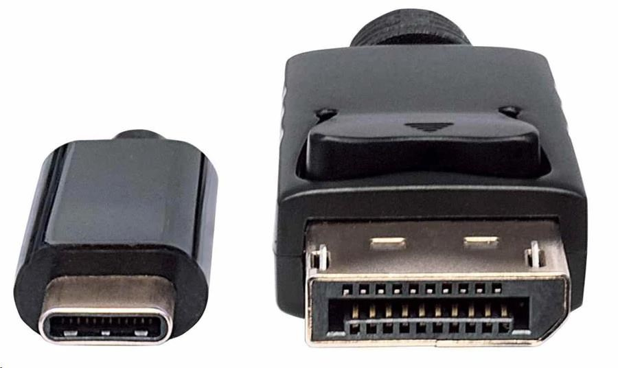 Akční nabídky na váš e-mailThe Manhattan USB-C to DisplayPort Adapter Cable transmits a USB audio/video signal to a DisplayPort projector, flat-panel display, television or similar device. Built-in circuitry allows digital media enthusiasts to easily enjoy USB-based multimedia content on an Ultra High Definition (UHD) display or TV while maintaining simultaneous A/V reception at the source. Its UHD capability supports up to 3840x2160@60Hz and 4K to serve a wide range of resolutions in many devices and UHD applications including training, retail and trade show settings. Your source device must support DP Alt Mode. No additional setup is required. It effortlessly delivers digital content that's stored on a smartphone, tablet, Ultrabook or notebook computer to a display with DisplayPort input capabilities.