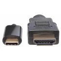 The Manhattan USB-C to HDMI Adapter Cable transmits a USB audio/video signal to an HDMI projector, flat-panel display, television or similar device. Built-in circuitry allows digital media enthusiasts to easily enjoy USB-based multimedia content on an Ultra High Definition (UHD) display or TV while maintaining simultaneous A/V reception at the source. Its UHD capability supports up to 3840x2160 @30Hz and 4K to serve a wide range of resolutions in many devices and UHD applications including training, retail and trade show settings. Your source device must support DP Alt Mode. No additional setup is required. It effortlessly delivers digital content that is stored on a smartphone, tablet, Ultrabook or notebook computer to a display with HDMI input capabilities.