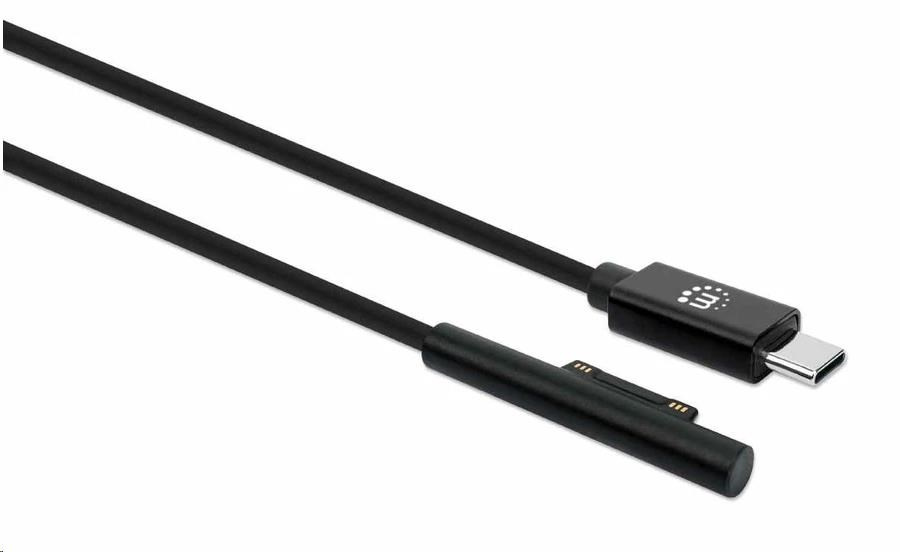 Please note: A 15-V charger is required to use this cable. Surface Pro, Laptop and Book models require 45 W PD (15 V / 3 A) or greater. Surface Go models require 30 W PD (15 V / 2 A) or 45 W PD (15 V / 3 A). For best performance, always use 45 W or 60 W USB-C PD charger, available from Manhattan.