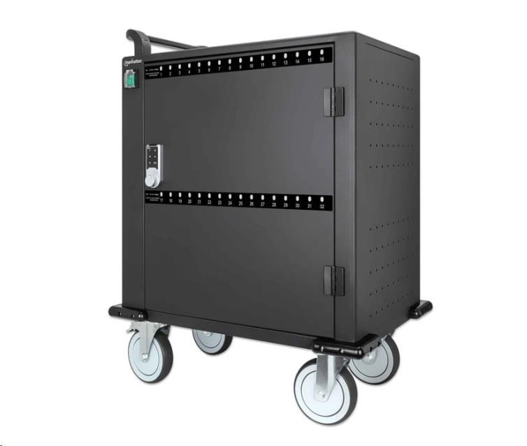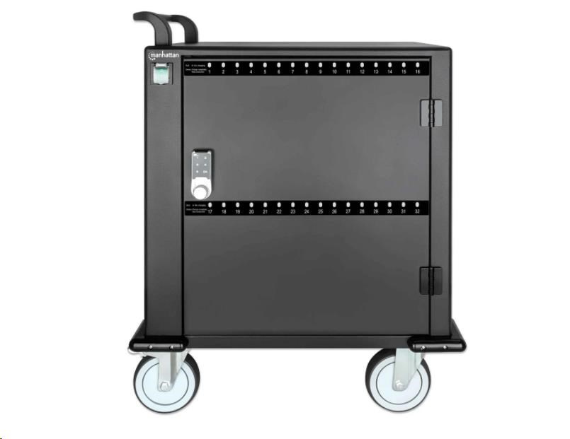 32 USB-C PD Ports, Bays for Phones & Tablets up to 12", 576 W Total, up to 18 W per Port, Pin-Code Lock, Surge Protection, Silent Ventilation, Metal Housing, Black