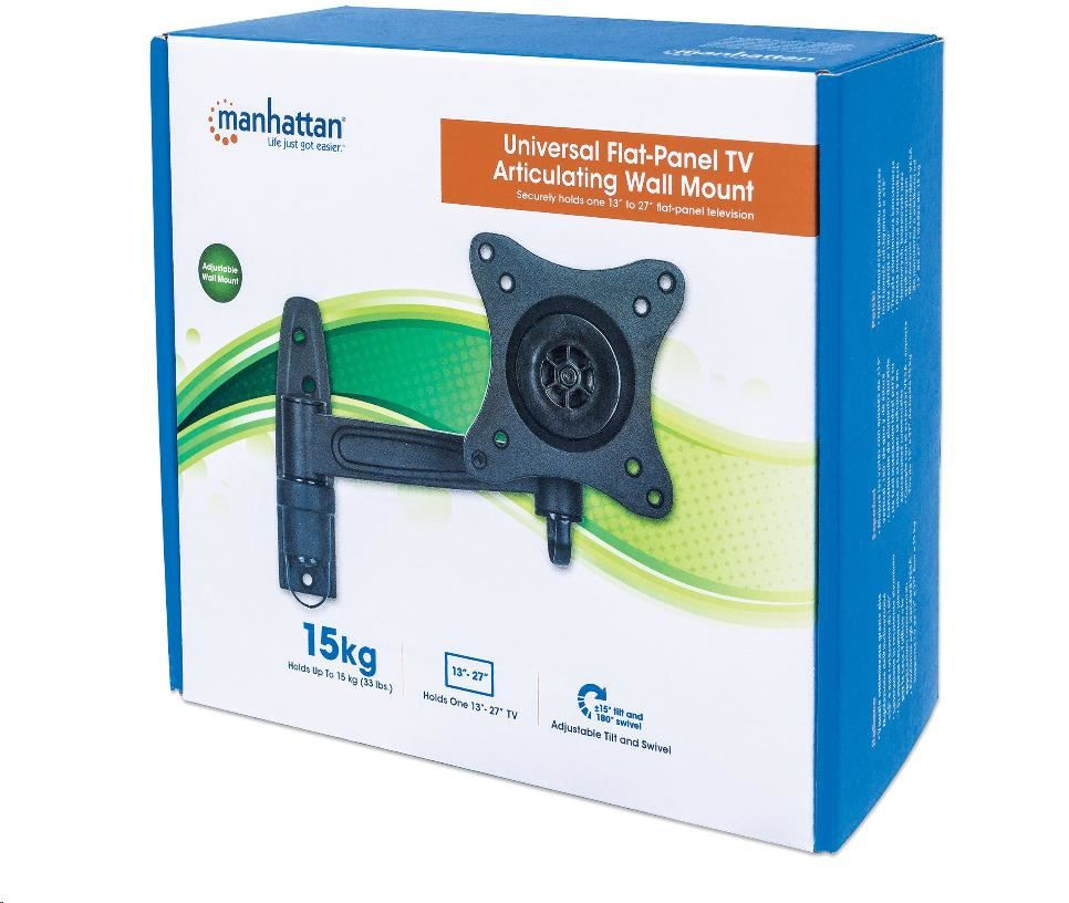 Overcome an odd floor plan, annoying glare or awkward furniture placement that can limit the enjoyment of your flat-panel TV. The Manhattan Universal Flat-Panel TV Articulating Wall Mount folds nearly flat against the wall and safely extends on a strong arm to help you achieve prime viewing positions from almost anywhere in the room. VESA-compliant and constructed of quality materials, this articulating wall mount fits a range of display sizes for a secure and confident above-the-floor TV installation. It's the perfect fit for mounting a TV in your living room, bedroom or den, as well as for commercial uses in hotels, classrooms, conference rooms, for digital signage and more. Wherever you install it, the Manhattan Universal Flat-Panel TV Articulating Wall Mount puts the best TV viewing experience front and center.