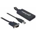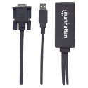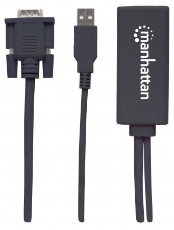 The Manhattan VGA and USB to HDMI Converter translates analog PC audio/video signals to HDMI format for compatible projectors, flat-panel HD displays, televisions and more. Advanced built-in circuitry lets you easily enjoy PC-based media on high-definition displays or TVs and maintains simultaneous A/V reception at the source PC. High bandwidth capability supports video resolutions up to 1920 x 1080 and 1080p@60Hz, serving beautifully for training, retail and trade-show purposes. Quick Plug and Play installation and Windows and Mac compatibility means the Manhattan VGA and USB to HDMI Converter makes it easy to deliver digital content stored on any desktop and notebook computers.