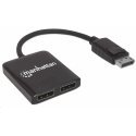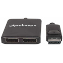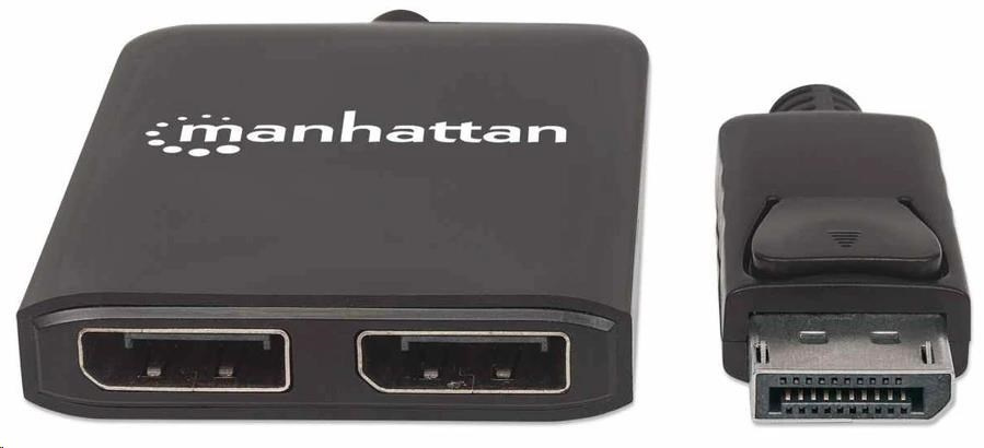 The Manhattan DisplayPort to Dual DisplayPort - MST Hub streams a 4K DisplayPort (DP) signal from a single UHD source to up to two UHD displays.