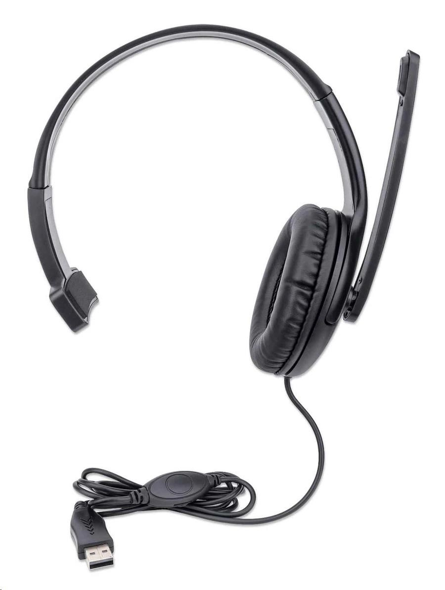 Akční nabídky na váš e-mailSingle-sided Over-ear Design, Wired, USB-A Plug, In-line Volume Control, Adjustable Microphone, Black