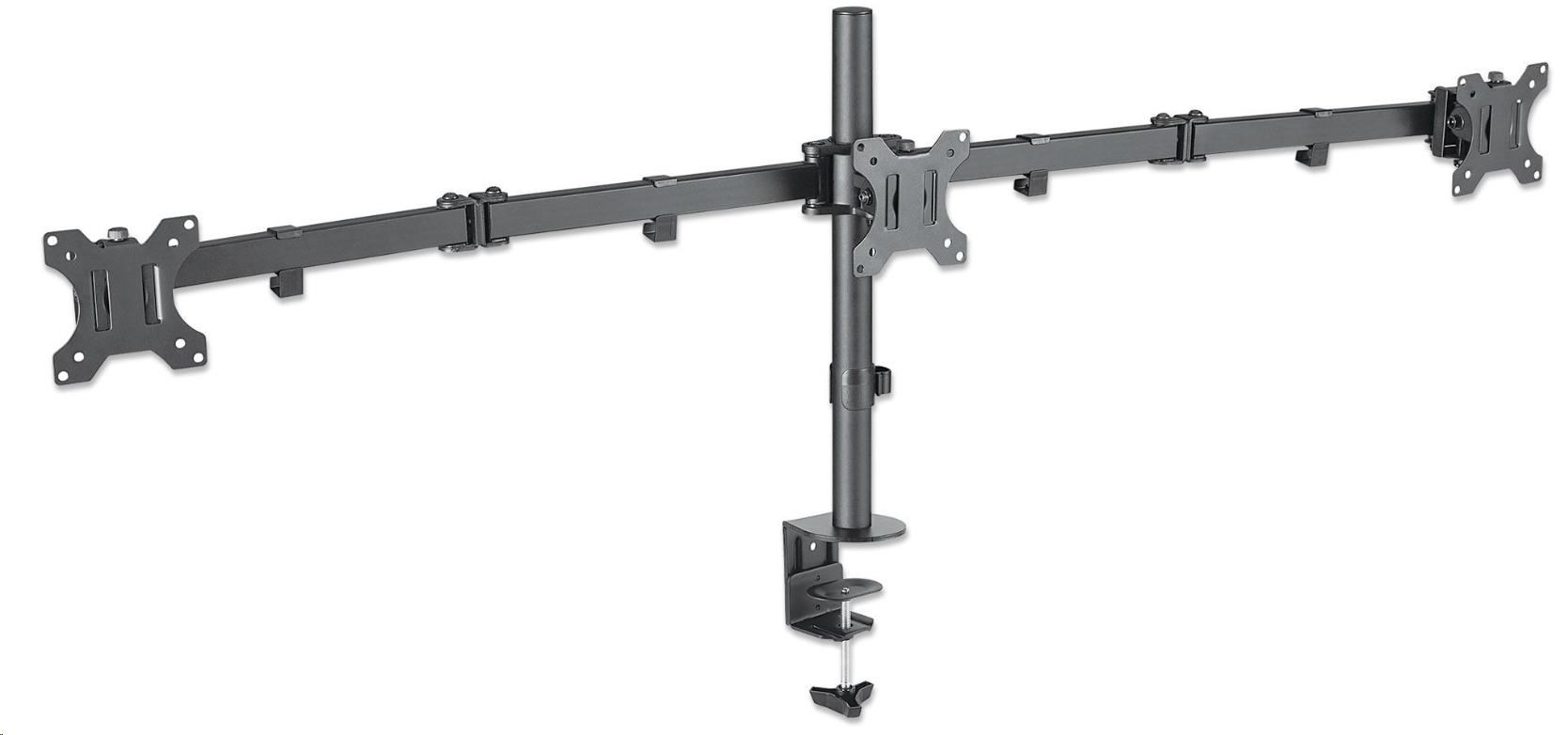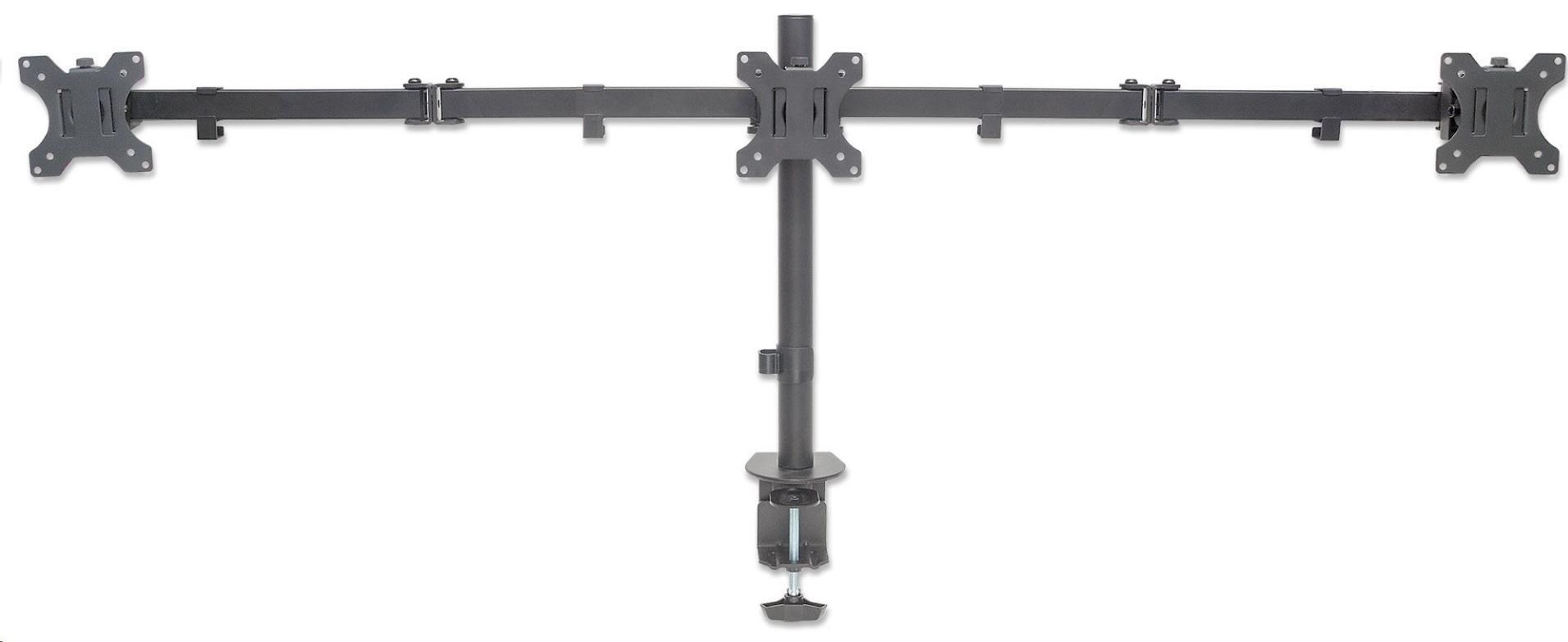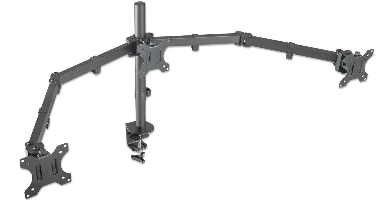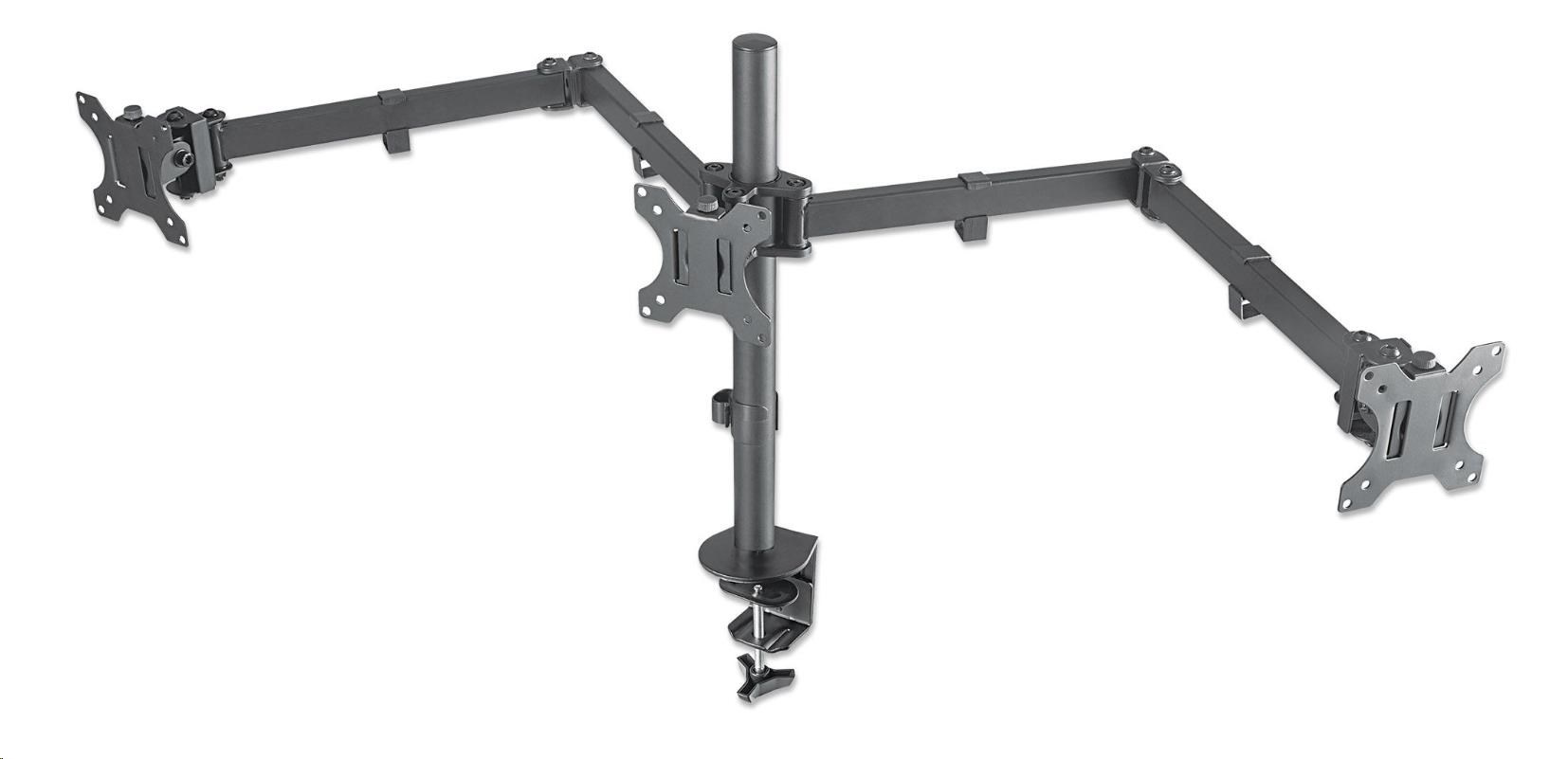 - Meets VESA standards – securely holds three LCD monitors from 13" to 27"