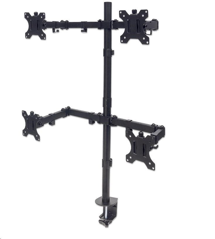 - Meets VESA standards — securely holds four LCD monitors from 13” to 32"
