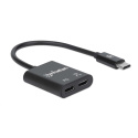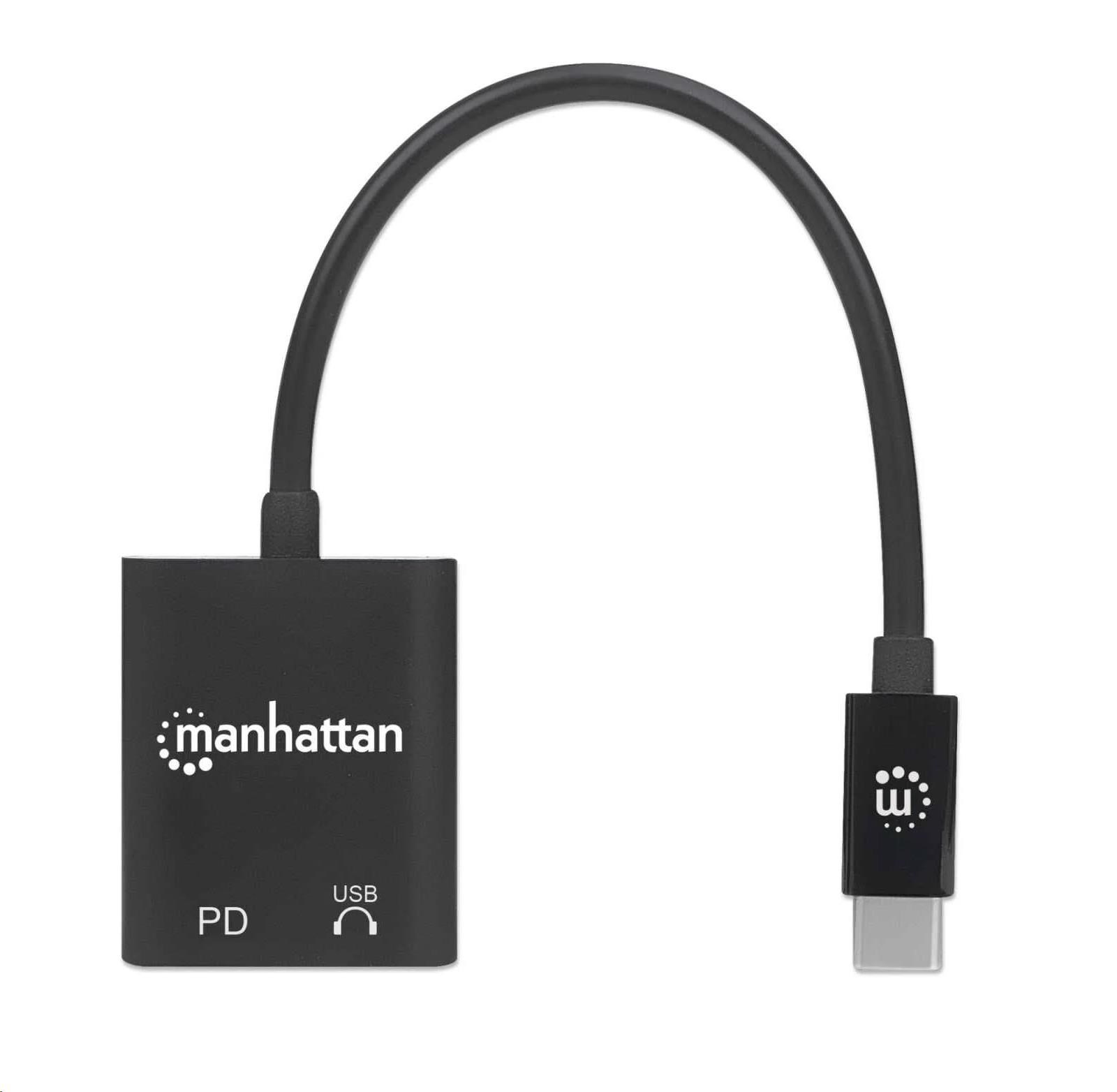 Want to listen to your USB-C headset and charging the device it connects to simultaneously? Add one USB-C audio port and get plenty of power for all your attached devices with the Manhattan USB-C Audio Adapter. Simply connect it to your computer's USB-C port, connect your computer's charging cable to the Power Delivery port on the adapter, and plug in your headphones. The adapter's Power Delivery technology charges your computer and all the devices it connects to so you can listen to music, favorite podcast or media program while you get work done. The jack also supports audio input if your headphone cable has a built-in mic so you can be heard and understood better in your online communications. Improve your productivity and get the audio connection you need with this USB-C audio adapter.