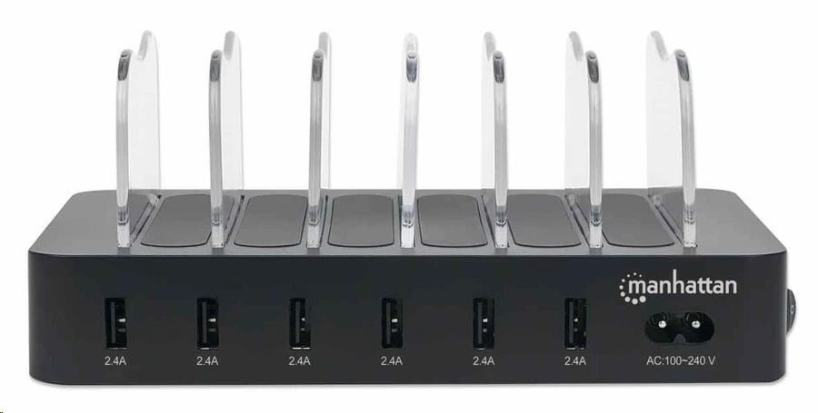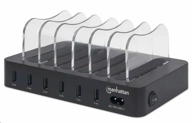 Akční nabídky na váš e-mailPortable USB electronics place heavy demands on their batteries for power and the Manhattan 6-Port USB Charging Station helps keep your tablets, mobile phones, digital cameras and other devices charged and ready to go. This charging station plugs into any standard wall outlet and offers rapid charging. With 50 W total power output, the station offers Smart IC technology to optimize device charging. Each port supports up to 5 V / 2.4 A to fast charge smartphones and other handheld devices. Plus, it smartly protects itself and your devices from short-circuits, over-voltage, over-current and overheating.