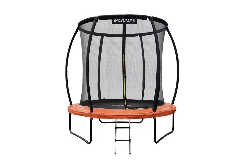 Trampolína Marimex Premium je skvělým doplňkem každé zahrady. Děti skákání na trampolíně milují a při skákání si snadno zacvičí i dospělí. Dokonalou stabilitu zajišťují tři nohy ve tvaru písmene U. Maximální zatížení dle normy EN 71-14: 50 kg Maximální zatížení dle výrobce: 100 kg Maximální testované zatížení: 500 kg Trampolíny Marimex Premium nevynikají pouze novým designem a barevností, ale také větší stabilitou, pevností a bezpečností. Zvýšené stability trampolín Marimex Premium je dosaženo pomocí vyššího počtu nohou. Bezpečnost zajišťují zesílené ochranné kryty pružin a nová technologie T-spojů. Vnitřní ochrannou síť podpírá osm dynamicky prohnutých tyčí a napnutou ji drží zpevněná horní obruč. Skákací plocha je vyrobena z velmi odolného a neabrazivního materiálu s vysokou životností. Na bezpečnostní prvky trampolín Marimex Premium je kladen velký důraz, proto jsou řazeny mezi nejbezpečnější a nejspolehlivější na českém trhu. Odrazová plocha Materiál odrazové plochy patří k nejkvalitnějším na trhu. Plocha je vyrobena ze speciálního polypropylenu s ochranou proti UV záření, který zaručuje dlouhou životnost. Speciální neabrazivní (hladká) povrchová úprava zabrání odření kůže při dopadu. Vnitřní ochranná síť Vnitřní ochrannou síť najdete přímo v balení, nemusíte si ji dokupovat zvlášť. Vnitřní ochranná síť je bezpečnější než vnější síť - brání přístupu skákajícího do části s pružinami. Vstupní prostor je zajištěn třemi přezkami a brání vypadnutí. Tyče jsou obaleny ochranným návlekem z měkčené pěny. Nohy trampolíny jsou samostatné a zvyšují stabilitu celé trampolíny. Spojení tyčí nohou trampolíny a sítě je jištěno speciálními sponami. Materiál a složení ochranných prvků Trubky a stojny: pozinkovaná ocel, průměr 38 mm, síla trubky rámu: 1,3 mm, síla trubky nohy: 1,2 mm Skákací plocha: PP (polypropylen) Ochranná síť: PE (polyethylen) Ochranný lem skákací plochy: 650g PVC+12 mm EPE + PE Přednosti trampolíny Marimex Premium Nový design - oblé tvary Barevná odlišnost (oranžový kryt pružin, černé rukávy, černé nohy) Kryt pružin ze silnějšího, odolnějšího a lépe vypadajícího PVC Zcela nový typ rukávů na stojny ochranné sítě (nahoře s poutkem na suchý zip = neshrnuje se), speciální materiál „ribbon“ Horní obruč ze silných trubek stejně jako rám Horní obruč trampolíny spojena se stojnami pomocí T-spojů; T-spoje přispívají ke stabilitě trampolíny a snazší montáži Aretační kolík na stojnách ochranné sítě, který brání vypadnutí tyčí Bezpečnost Trampolíny jsou určené pro náročné pohybové aktivity, proto klademe důraz na jejich bezpečnost a spolehlivost. Použití kvalitních materiálů a moderních technologií při výrobě řadí naše trampolíny mezi nejbezpečnější a nejspolehlivější na českém trhu. K tomuto produktu doporučujeme dokoupit položku 19000730 - Sada kotvící s kovovou sponou (3 ks vrtáků)-trampolína. Rozměry 1 ks zabaleného zboží (DxŠxV) a brutto váha: 1 balík: 132x 57x 20 cm, váha 40 kg Průměr trampolíny 244 cm Průměr skákací plochy 201 cm Výška skákací plochy 54 cm Výška vč. sítě 234 cm Počet nohou 3 Druh trampolíny nadzemní Provedení trampolíny pružinová Počet pružin 48 Počet tyčí 6 Ochranná síť ano Spodní ochranná síť ne Doba montáže 60 minut Maximální zatížení dle normy EN 71-14: 50 kg Maximální zatížení dle výrobce: 100 kg Maximální testované zatížení: 500 kg.