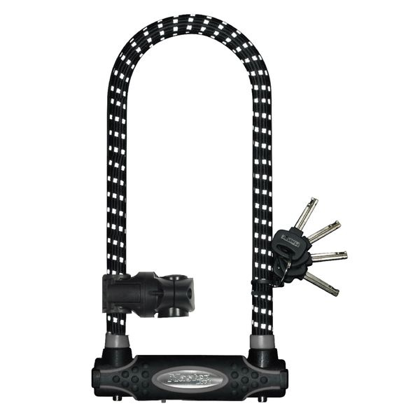 Akční nabídky na váš e-mailTělo zámku je vyrobené z tvrzené oceli odolné proti povětrnostním vlivům. Jeho třmen s reflexními prvky je z kalené oceli o průměru 13 mm. Vinylový potah třmenu zabraňuje poškrábání laku. Zámek obsahuje diskovou cylindrickou vložku odolnou proti vyhmatání a dvojitou západku odolnou proti vypáčení. Navíc krytka klíčové dírky zabraňuje vniknutí nečistot. Součástí balení je držák pro praktické skladování a 4 ks klíčů.