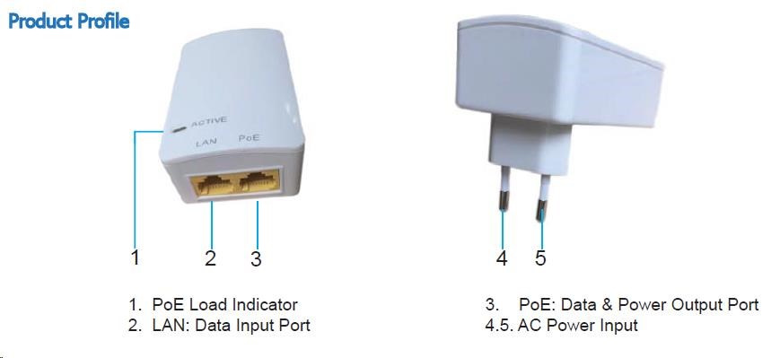 Popis MaxLink PI15S aktivní gigabitový PoE injektor, 802.3af, 15W (48V, 0.32A)