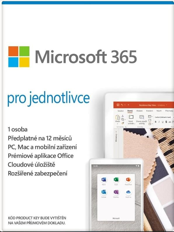 | Typ Softwaru | Balíček kancelářských aplikací (Word, Excel, PowerPoint a Outlook), OneDrive s kapacitou 1 TB |