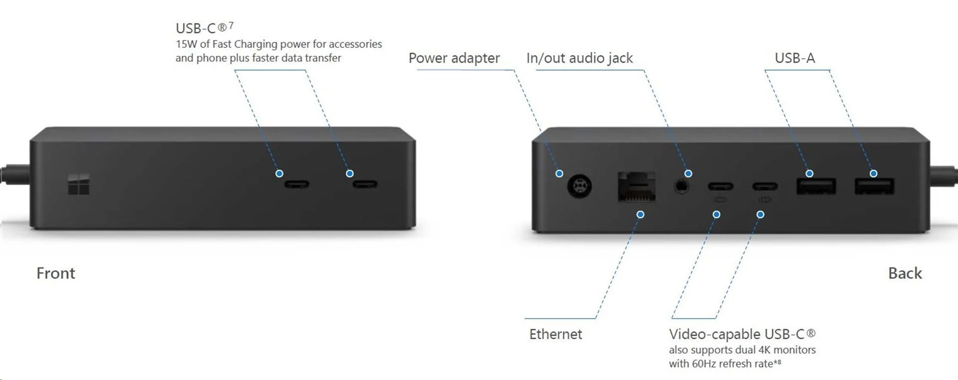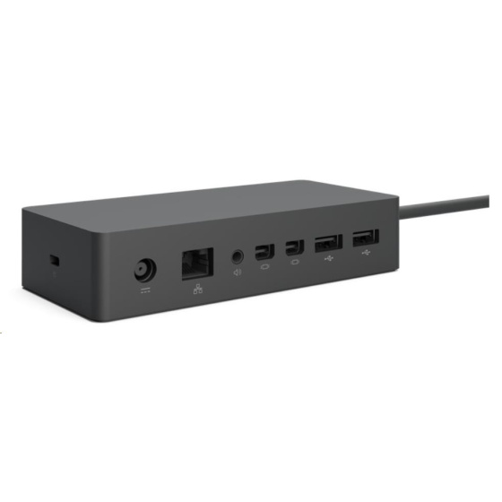Akční nabídky na váš e-mailOriginální a inovativní dokovací stanice Microsoft Surface Dock 2 je speciálně určena pro operační systém Windows 10 a zařízení Microsoft Surface. Disponuje rozhraním 2 x USB 3.2 Gen 2 (zadní, 7.5 W), 2 přední USB 3.2 Gen 2 (15W), 2 zadní USB 3.2 Gen 2 (DP1.4a) (7.5W), 3.5 mm audio in/out, gigabitový ethernet a zámkem Kensington. Podporuje až 2x 4K rozlišení, bleskurychlé dobíjení smartphonu přes USB-C a umožňuje administrátorské zásahy.