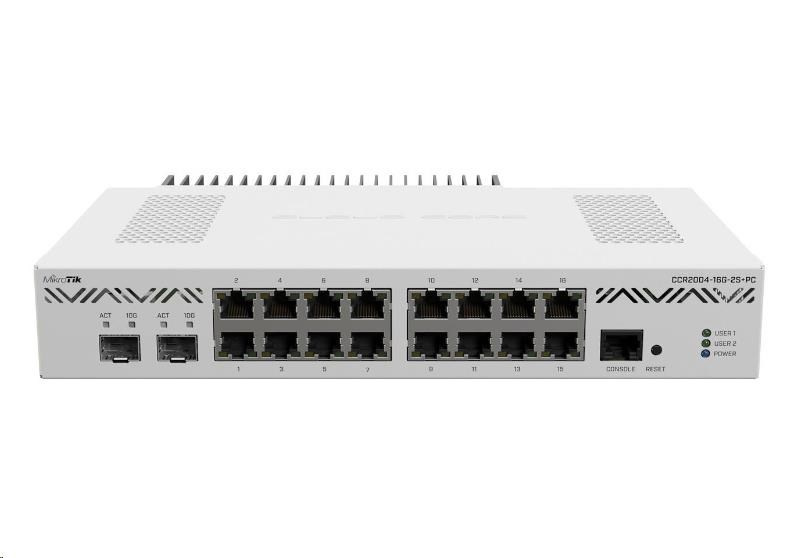 Akční nabídky na váš e-mailCCR2004-16G-2S+PC je desktopový nebo rackmount router do 19" racku z nové řady CCR routerů, která přichází s pasivním chlazením a nejvyšším poměrovým výkonem na 1 jádro ze všech CCR, což je nejdůležitější aspekt, pokud jde o náročnější operace založené na processing per-connection (např. QoS). Router je poháněn CPU s 64bit ARM architekturou s taktem 1200 MHz, má 4GB RAM typu DDR4 a 128MB NAND uložiště.