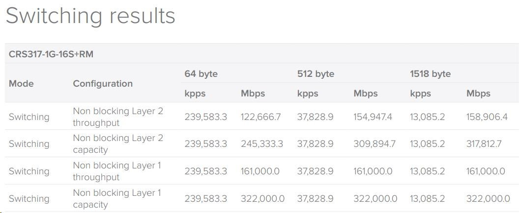 CRS317-1G-16S+RM je poháněn novou generací chipů, která dává dostatečně vysoký výkon pro všech šestnáct 10G portů při použití s kteroukoliv velikostí Ethernetových rámců. Nové funkce jako hadwarový spanning-tree protokol nebo Link Aggregation (LACP) poskytnou vaší síti dostatečnou ochranu, spolehlivost a zvýší úroveň na opravdu profesionální úroveň.