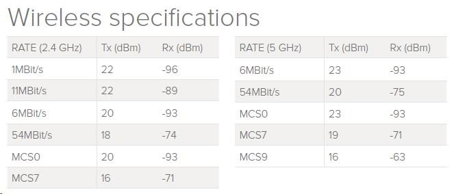 hAP ac lite je nový kompaktní router podporující standard 802.11ac. Je integrována jak 2.4GHz tak 5GHz Wi-Fi. (2.4GHz využívá 802.11b/g/b, dual chain 1.5dBi anténa, 300Mbps / 5GHz jede na 802.11ac a nechybí ani zpětná kompatibilita s 802.11a/n., single chain - 2dBi anténa, 433Mbps). Tato duální wifi tak dosahuje celkových přenosových rychlostí až 733Mbps. Procesor je taktován na 650MHz a sekunduje mu 64MB RAM operační paměti typu DDR. K dispozici je celkem pět ethernetových portů 100Mbps s podporou PoE in(port1) taktéž out (port5).