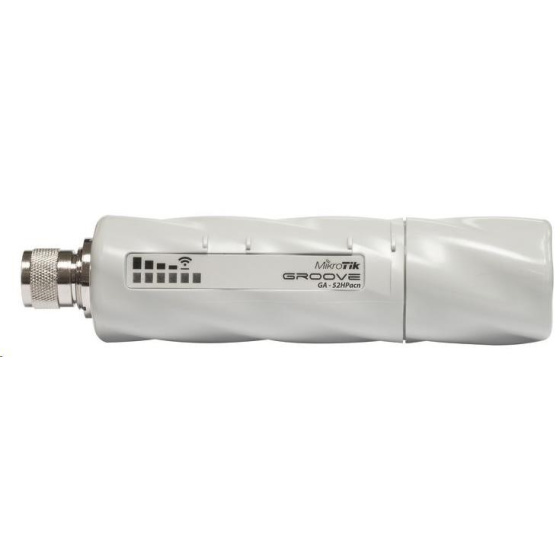 RouterBOARD RBGrooveGA-52HPacn je nejmenší venkovní jednotka od MikroTiku využívající výhod systému RouterOS. RouterBoard je umístěn v odolném vodotěsném pouzdře. Má jeden gigabitový ethernet port s podporou PoE. Podporuje standarty 802.11b/g/a/n/ac včetně protokolu NV2 s TDMA technologií. Je dodáván s L4 licencí (režim AP). Konektor pro připojení antény je typu N-male, anténu lze tedy připojit přímo bez kabelu. Už žádný zbytečný útlum a problémy s degradací paramterů bezdrátového spoje! Jenotka disponuje řadou LED diod signalizující sílu signálu pro snadnou instalaci v terénu.