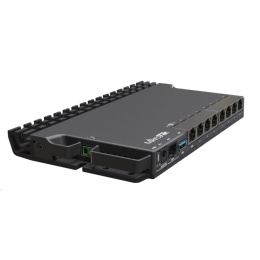RB5009 je zcela nová řada RouterBOARDů, která přichází s pasivním chlazením, inovativním až futuristickým designem a vysokým výkonem (o 60-90% vyšší než RB4011) o který se zasluhuje 64bit ARM architektura procesoru s taktem 1400 MHz, 1GB RAM typu DDR4 a 1GB NAND uložiště. Router disponuje 7x Gigabit LAN, 1x 2.5Gbit LAN s možností napájení přes PoE (24-57VDC, 802.3af/at) ale také přes DC jack či svorkovnici z levého boku, 1x SFP+ slot a 1x USB 3.0. Právě díky designu kovového šasi je možné s dokoupitelným příslušenstvím namontovat router do 19" racku. Dokonce až 4 routery naráz se díky úsporným rozměrům vměstnají do 1U výšky!