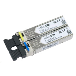 Jedná se o pár SFP modulů, S-35LC20D je jednovidový (SM) SFP modul s max. datovou propustností 1.25G a LC konektorem, vlnová délka pro vysílání je 1310nm a pro příjem 1550nm. Maximální délka spoje 20km s podporou DDM.