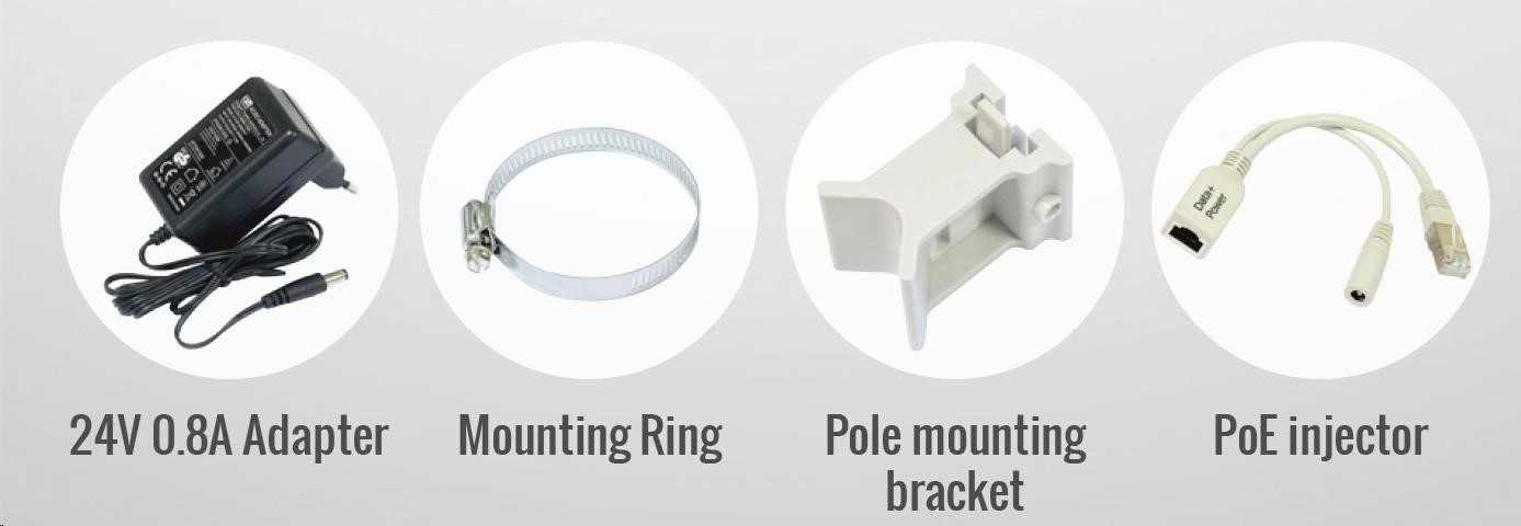 Balení obsahuje: SXT SA ac, PoE injektor, napájecí zdroj, montážní sada na stožár
