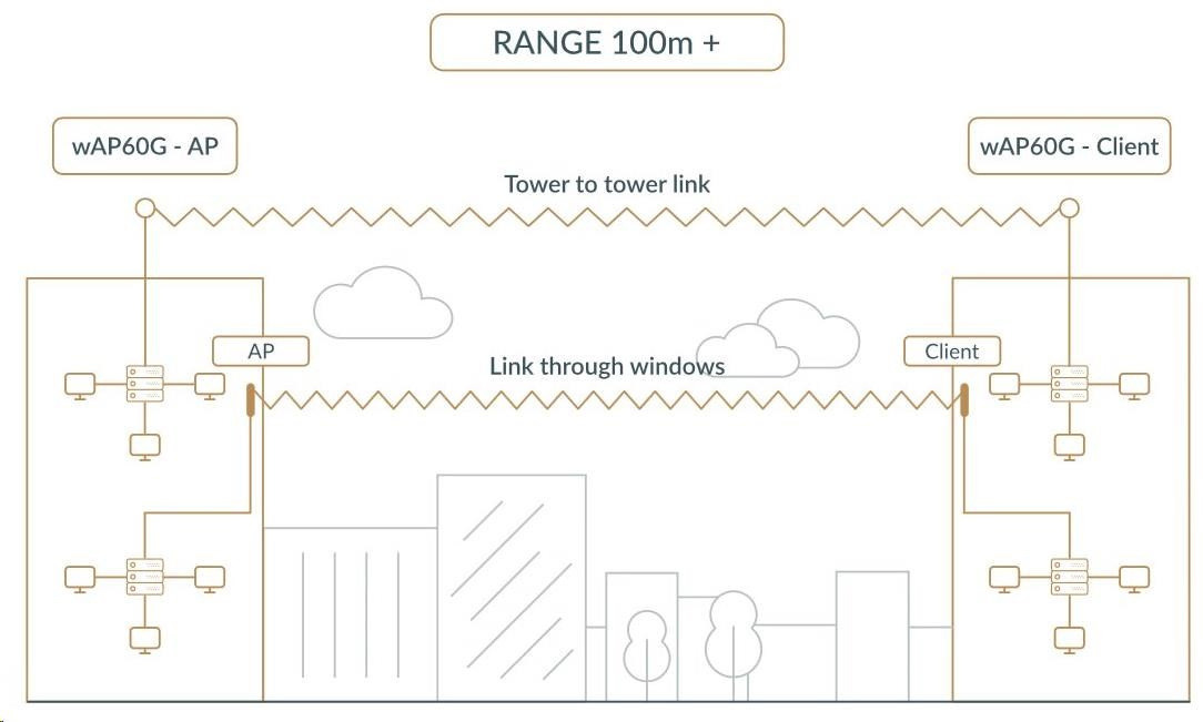 Instalace zařízení je velmi jednoduchá a díky 60° integrované anténě jej lze nainstalovat na zeď / stožár nebo přímo za okno pomocí přiloženého plastového podstavce. wAP 60G AP s L4 licencí podporuje až 8 připojených klientů na vzdálenost 100m+