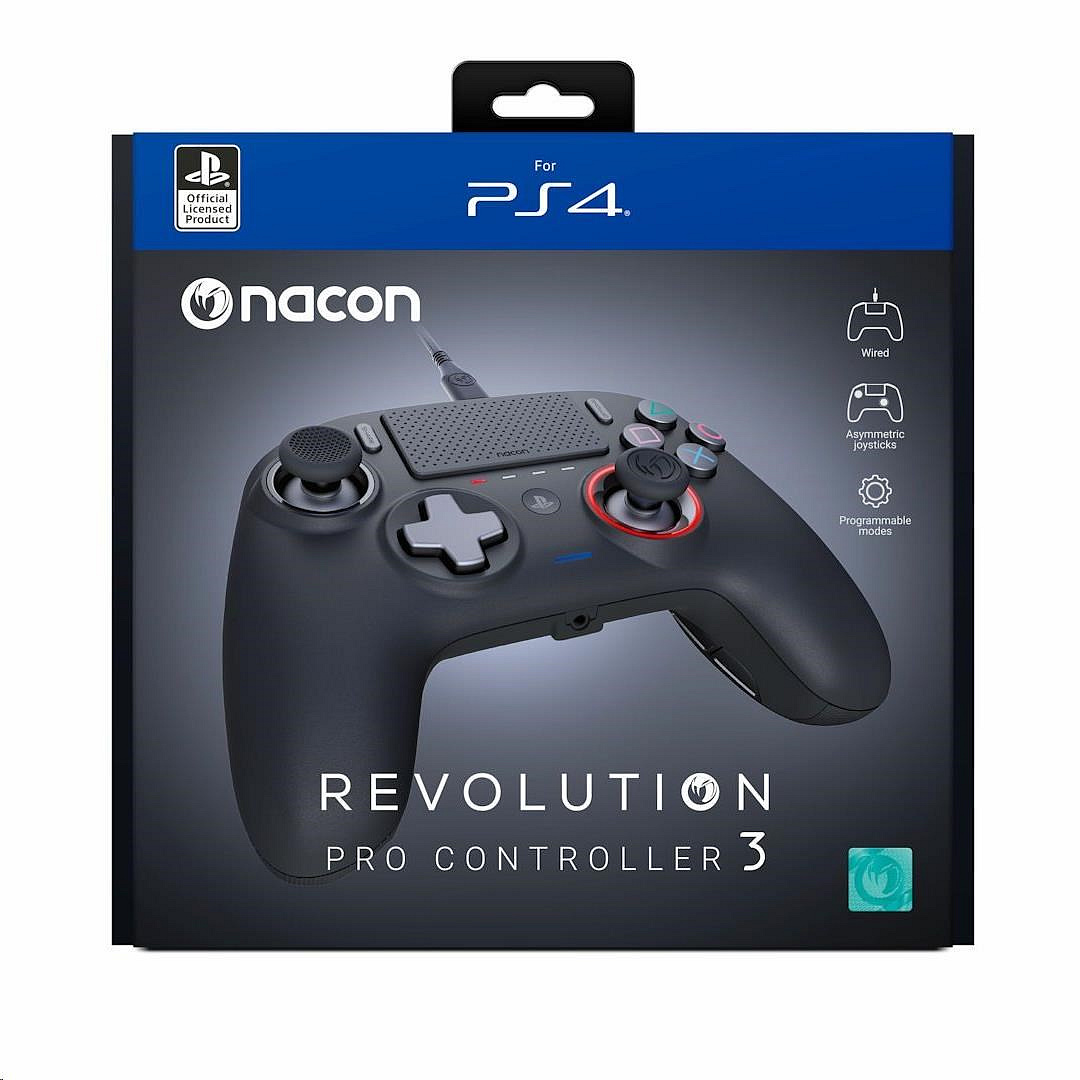 Drátový herní ovladač Nacon Revolution Pro Controller 3 disponuje nesouměrně umístěnými páčkami, rozměrnějšími spouštěmi, většími akčními i zadními tlačítky a také dvěma prostory pro závaží umožňujícími upravit hmotnost ovladače podle vašich konkrétních potřeb. Hrát můžete buď v běžném režimu pro PS4, nebo v pokročilých režimech pro PS4 a PC. S pomocí doprovodné aplikace můžete v těchto režimech upravit nastavení analogových páček i spouští, přiřadit libovolná tlačítka k tlačítkům zkratek, přepínat mezi čtyřsměrným nebo osmisměrným nastavením směrového ovladače, upravit sílu vibrací v úchopech, změnit barvu světelného kruhu kolem pravé páčky nebo nahrávat do ovladače vlastní herní profily, mezi kterými poté můžete bleskurychle přepínat.