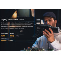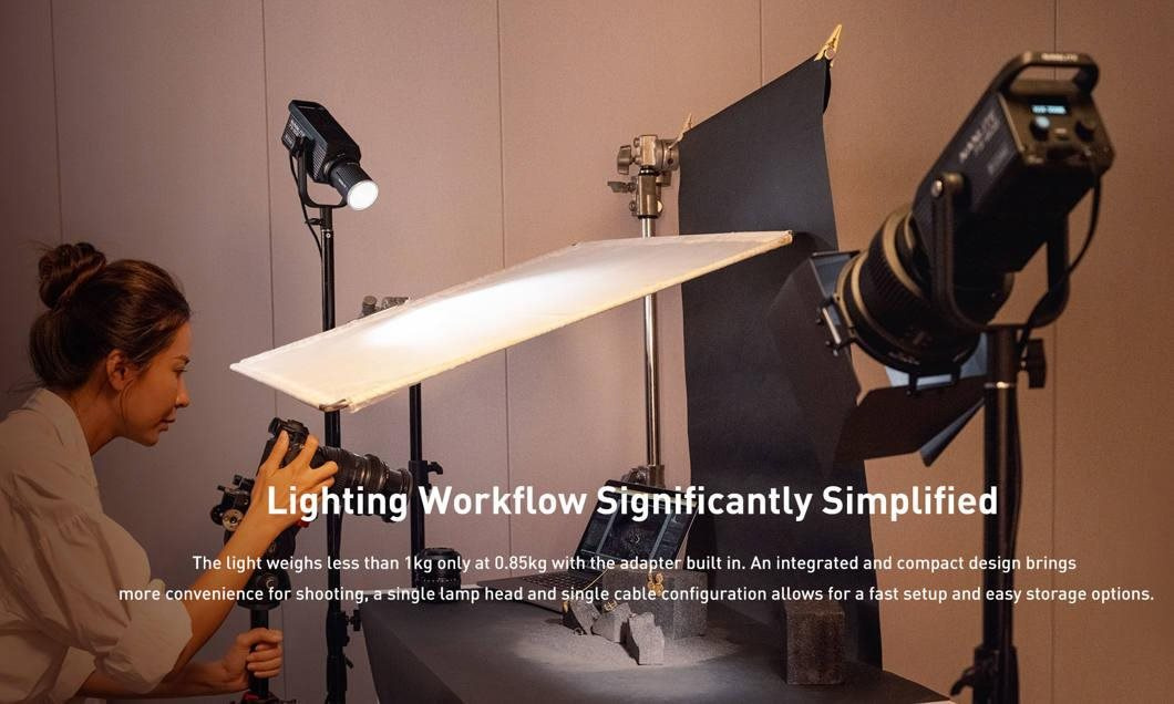 Nasviťte si své live streamy, videa a fotografie pomocí tohoto malinkého světla, které váží pouhých 0,87 kg. Toto kompaktní, výkonné a univerzální světlo má 45° reflektor, který nabízí výkon 6 228 lumenů. Ve vzdálenosti 1 metru vyzařuje 13 360 luxů světla vyváženého jako denní světlo s teplotou 5 600 K. Světlo má navíc rozsah barevných teplot 2700–6500K a vysoké indexy CRI/TLCI s hodnotami 96/97, což zajišťuje pokročilé a přesné podání barev. Dvoubarevné provedení světla poskytuje jak teplejší umělé tóny, tak chladnější tóny denního světla a zachovává přitom příjemné tóny pleti.
