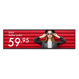 Akční nabídky na váš e-mailTento prodloužený 42palcový displej, který poskytuje prostorově efektivní vizualizaci ve stísněných prostorech, jako jsou chodby a regály v prodejnách, nabízí výrazný ultra širokoúhlý poměr stran 16:4. Zatímco vysoká přizpůsobivost zahrnuje orientaci na šířku i na výšku, což je ideální pro oblast s omezeným prostorem, tvorba obsahu zůstává nadále jednoduchá a nenáročná. Obsah je ostrý a jasný s přesvědčivou čitelností i v pronikavě osvětleném prostředí s vysokou úrovní jasu 700 cd/m2 v kombinaci s povrchem tlumícím světelné odrazy. Moderní tenký design vytváří elegantní digitální povrch, který se dokonale hodí do okolní architektury a bezproblémově zapadá do každého prostředí.