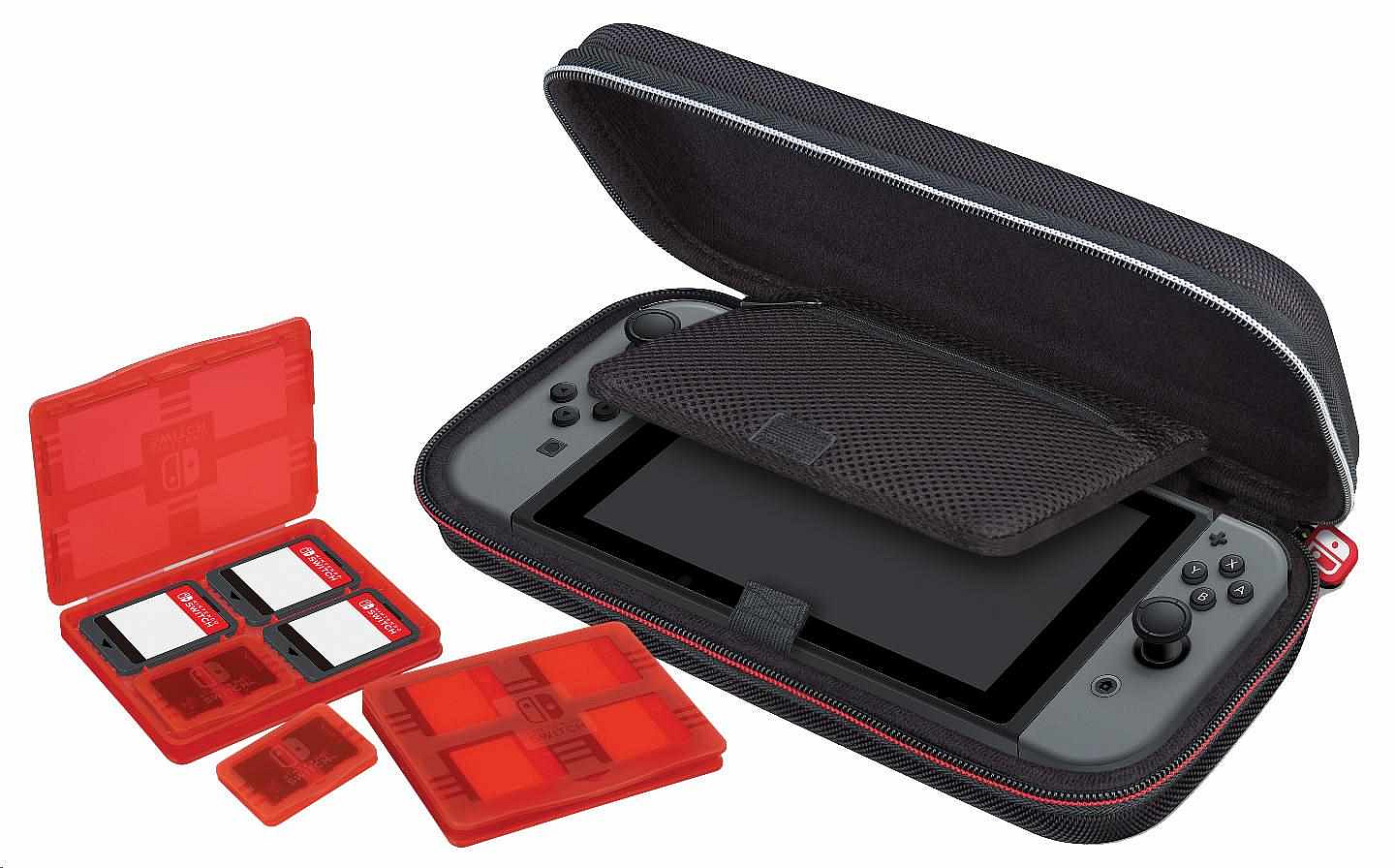 Balení rovněž obsahuje dvě plastová pouzdra na herní karty, z nichž do každého se vejdou čtyři herní karty, a také dvě plastová pouzdra na microSD karty, přičemž do každého z těchto menších pouzder se vejdou dvě microSD karty a každé z těchto pouzder se vejde do libovolné pozice ve větším pouzdru na herní karty.