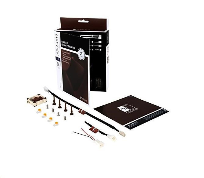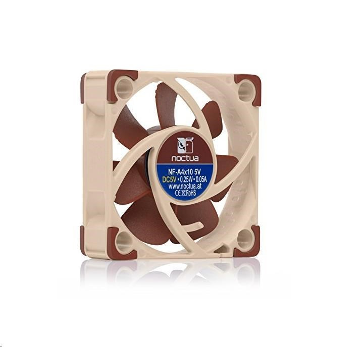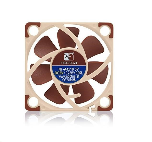 ventilátor, tichý, jen pro 5V napájení, rozměry 40x40x10mm, hlučnost 17.9dB, průtok 8.2m3/h, 3pin, 4500 otáček, optimalizovaná geometrie a povrch 7 lopatek, SSO2