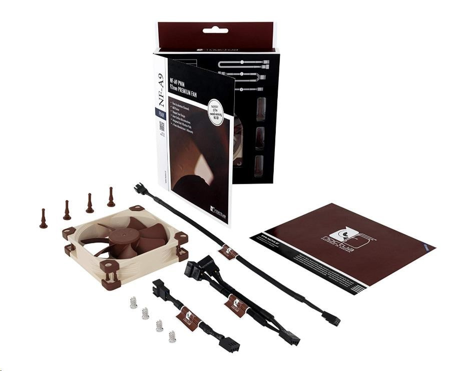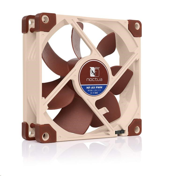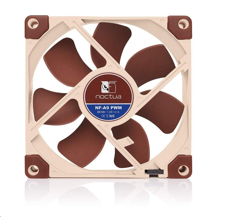 ventilátor, tichý, rozměry 92x92x25mm, hlučnost 16.3 (s L.N.A.) /22.8dB, průtok 62.6 - 78.9m3/h, 400 až 2200 otáček, 4pin PWM, adaptér L.N.A., samostabilizující olejové ložisko