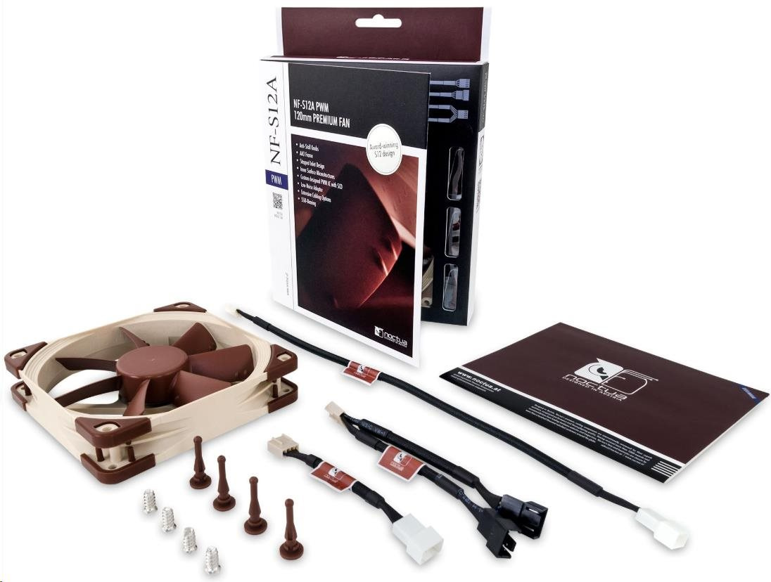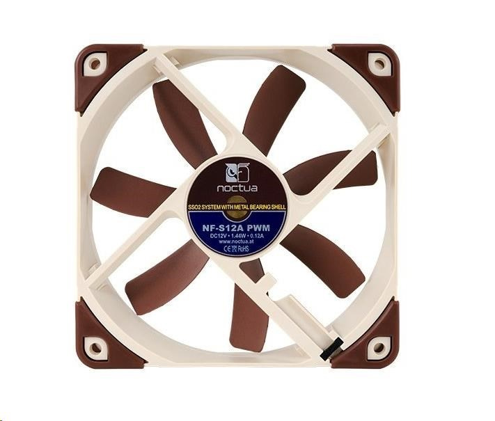 ventilátor, ultratichý, rozměry 120x120x25mm, hlučnost 17.8dB, průtok 107.5 m3/h, 300 až 1200 otáček, optimalizovaná geometrie a povrch lopatek, samostabilizující olejové ložisko