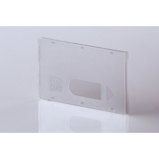 Tuhý plastový obal pro magnetické karty 54×86 mm – vodorovná s postranním výřezem, provedení z průhledného polomatného polyprophylenu. Otvor a postranní výřez pro snadné vysunutí karty. Obaly chrání karty nejen proti mechanickému poškození, ale i vlivům UV záření, antistatické elektřiny a v omezené míře i magnetismu..