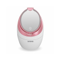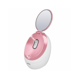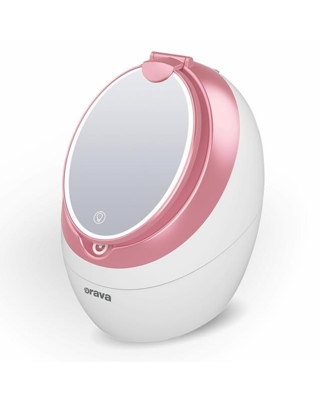 Do 80 ml nádržky naberete vodu, zapojíte ji do elektrické zásuvky, zapnete - a domácí wellness pro pleť právě začal. Sauna vytváří vodní páru o teplotě 40 °C. Pokožku hloubkově vymasíruje a hydratuje ji, otevře póry pro efektivnější čištění a připraví pleť pro přijímání živin a blahodárných esencí z výživných krémů a masek a kúr, které si po inhalaci a vyčištění pleti nanesete na obličej a dekolt.Kosmetické zrcátko