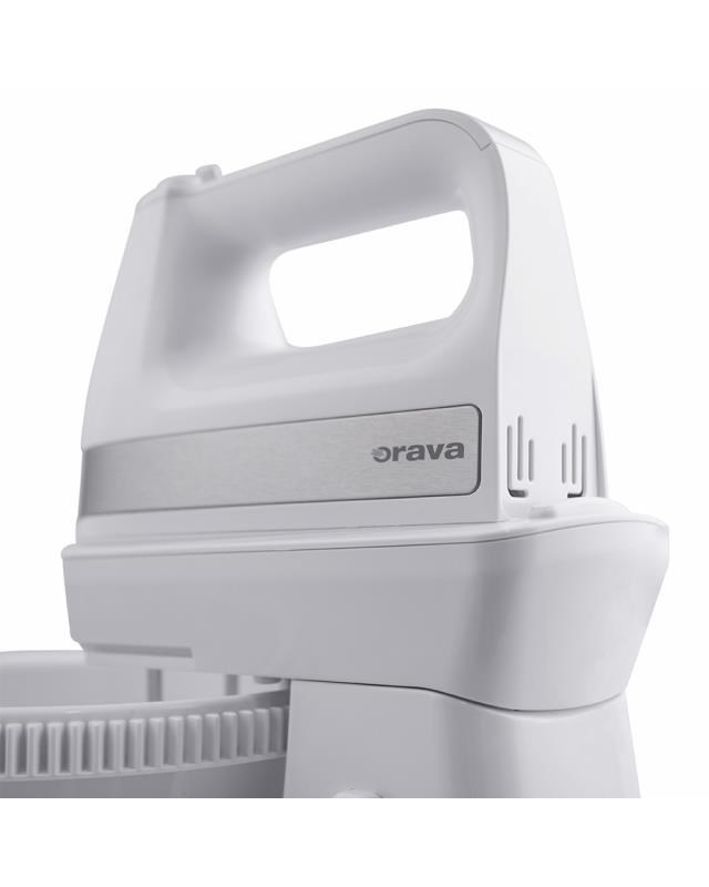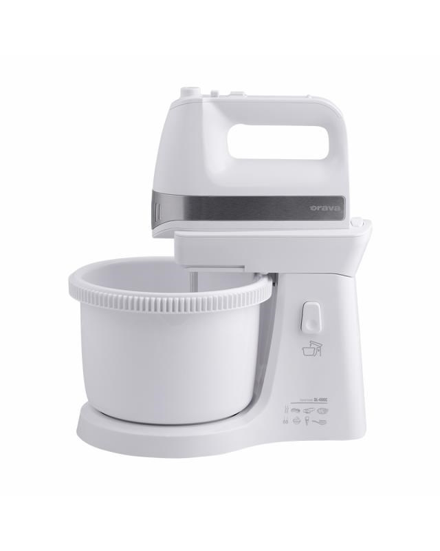 Popis Orava SL-400 C ruční šlehač s nádobou, 400 W, 85 dB, 5 rychlostí, 2.5 l objem mísy, pulzní spínač, bílá