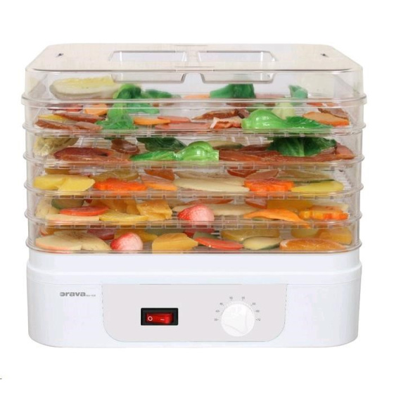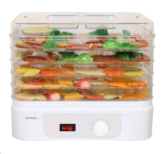 Popis Orava SU-102 sušička ovoce a zeleniny, 230 W, 5 roštů, 55 dB, regulace teploty, bílá