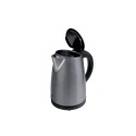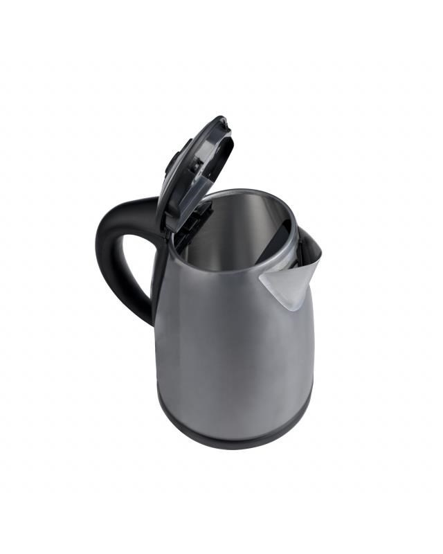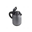 Elektrická varná konvice - šedá. Varná nádoba z ušlechtilé nerezové oceli. Objem 1,7l. Otevírání vrchního víka konvice stisknutím tlačítka. Varná nádoba na odnímatelném 360° otočném podstavci. Topné těleso překryté plotnou s ušlechtilé oceli. Stupnice hladiny vody. Ochrana před ohřevem bez vody. Auto vypnutí. Vyjímatelné filtrační sítko na vodu. Síťová šňůra odkladatelná v podstavci. Napájení 230V 50 Hz, 2000 W.