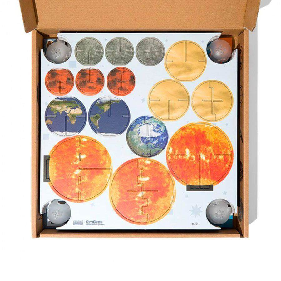 Učit se o vesmíru jen čtením učebnice by byla obrovská škoda. Podpořte zvídavost mladších žáků sadou OzoGoes to the Solar System, která je do problematiky zaručeně vtáhne. Společně sestaví makety planet, umístí je na pracovní desku a přiřadí k nim kartičky s odpovídajícími vlastnostmi. Čtyři Slunci nejbližší planety mohou být uvedeny do pohybu s pomocí malých robotů Ozobot. Následným pozorováním modelu sluneční soustavy děti získají odpovědi do přiložených pracovních listů, upevní si získané vědomosti, ale také rozvíjí kritické myšlení.