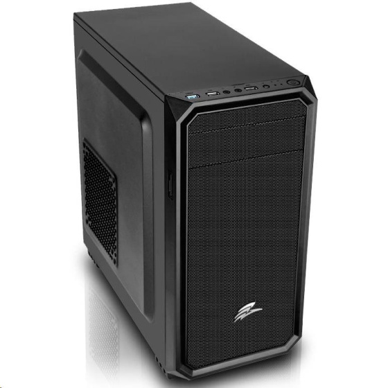 Provedení skříně:Midi Tower; Barva skříně:Černá; Počet pozic 5.25":1; Počet pozic 3.5" (HDD):2; Počet pozic 2.5" (SSD):2; Vybavení PC skříně:Bez integrovaného zdroje, Přední USB panel.