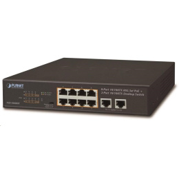 Akční nabídky na váš e-mail10portový PoE přepínač 10/100Base-TX, včetně 8x Power over Ethernet injektorů (napáječů) standardu IEEE 802.3at, celkový výkon až 120W.