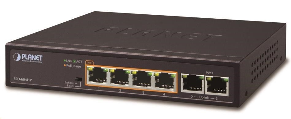 Nespravovaný přepínač vhodný pro CCTV kamerové IP systémy. Má malé rozměry, nízký příkon a možnost dále napájet Power over Ethernet koncová zařízení podle standardu IEEE 802.3at. Umožňuje připojit a napájet zařízení ethernet rychlostí 10Mb/s do vzdálenosti až 250m na klasické UTP kabeláži, jednotlivé porty s PoE napájením lze provozně oddělit portovými VLAN.