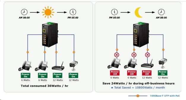 Planet IGS-10020HPT PoE switch 8x 1000Base-T, 2x SFP, 802.3at 270W, IP30, -40 až 75°C, SNMP, IGMPv3, IPv6 Inteligentní přepínače pro průmyslový Ethernet jsou určeny do náročných provozních podmínek s velkým rozsahem pracovních teplot, nejistým napájením a častými otřesy. Zároveň poskytují vynikající možnosti vícenásobných propojení pro dosažení robustnosti propojení systémů s velmi nízkou dobou zotavení. IGS-10020HPT je vybaven pro redundanci kromě dobře známé metody Spanning Tree (jejíž doba zotavení je v řádu sekund) především specializovanou funkcí "Redundant ring" která má dobu zotavení a nalezení nové cesty do 300ms. Jako PoE přepínač umožňuje přímo napájet až 8 koncových zařízení dle normy IEEE 802.3at, je tak ideálním prvkem pro aplikace se sníženou možností napajení. Přepínače řady IGS se snadno instalují na standardní DIN lištu nebo přímo na zeď a umožňují nasazení dobře známé Ethernetové technologie i v průmyslovém prostředí. Stejně tak jsou vhodné pro instalace do venkovně umístěných skříní s velkým kolísáním pracovních teplot (typicky bezdrátové a MAN ISP aplikace). Vlastnosti: - 8 portů 1000Base-T, Switching, Full Duplex (1000/2000 Mbps), Auto-Negotiation (10/100/1000 Mbps), automatická detekce přímý/křížený kabel na každém portu - na všechny implementace PoE IEEE 802.3at injektory se zatížitelností 30W/port, celkově až 270W - 2 porty SFP pro instalaci modulů 1000Base-SX/LX/BX nebo 100Base-FX - propustnost: sběrnice 20Gbps, 14,8Mp/s (64B) - podpora Jumbo Frame do 9kB, 8k MAC adres, buffer 4Mbity - 255 VLAN IEEE 802.1Q sítí, MAC nebo protocol based VLAN, VoIP VLAN - agregace linek "port trunking" IEEE 802.3ad LACP - IGMP v1,v2,v3 až do 256 multicast skupin, IGMP querier mode - 8-úrovní QoS prioritizace provozu dle portu, DSCP/ToS, 802.1p nebo 802.1Q značky - podpora Spanning Tree IEEE 802.1d, Rapid Spanning Tree IEEE 802.1w - IP/MAC ACL (access control list) do 123 pravidel, MAC/IP binding - DHCP snooping - port shaper - administrace Web/SNMPv3 s podporou zabezpečeného přenosu SSH/SSL - podpora IPv4/IPv6 - PoE scheduler pro možnost zapínání/vypínaní napájení podle časového plánu - pole LED indikátorů pro diagnostiku provozu - instalace na DIN lištu, montážní díl součástí - instalace na zeď, montážní díl součástí - krytí IP30 - napájení: 48V DC redundantní, připojení možné ze dvou různých zdrojů (nejsou součástí balení); vlastní příkon do 30W - ochrana proti přepólování, připojení napájení na svorkovnici, umístění na spodním panelu (nepřekáží při montáži na zeď) - přepěťová ochrana napájení do 6kV proti napěťovým špičkám (EFT) - přepěťová ochrana LAN portů do 6kV proti elektrostatickému náboji (ESD) - spínací poplachové relé (24V/1A) při výpadku primárního napájení - zařízení je odolné proti pádu (IEC-60068-2-32) z výšky 75cm na všechny dopadové části - zařízení je odolné proti vibracím (IEC-60068-2-6) 10-500-10Hz, 4x g, 0,5oct/min - zařízení je odolné proti přetížení krátkodobému zrychlení 50g, dlouhodobému 4g, (IEC-60068-2-27) - EMI/EMS, elektromagnetická kompatibilita a slučitelnost dle CE EN-6100-4-2,3,4,5,6 - elektrická bezpečnost dle CE EN-60950 - pracovní teplota -40 až 75°C, vlhkost do 95% - hmotnost: 1684g - rozměry: 152 x 107x 72 mm.