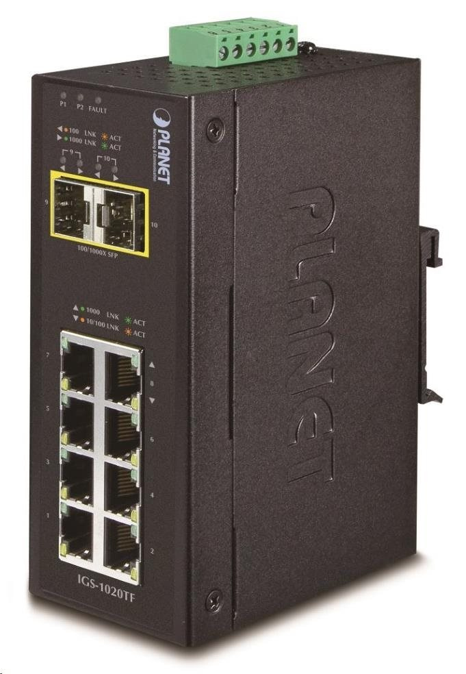 Akční nabídky na váš e-mailPrůmyslový přepínač a konvertor 8x 10/100/1000Base-T, 2x SFP 100/1000Base-X. Energeticky efektivní dle 802.3az.