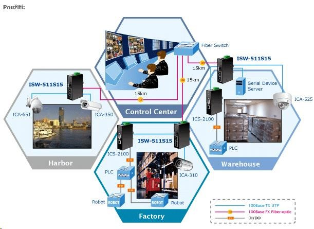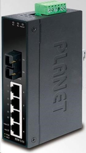 Popis Planet ISW-511, 4x 10/100Base-TX+ 1x 100FX 2km, MM, DIN, IP30