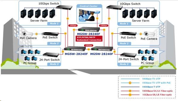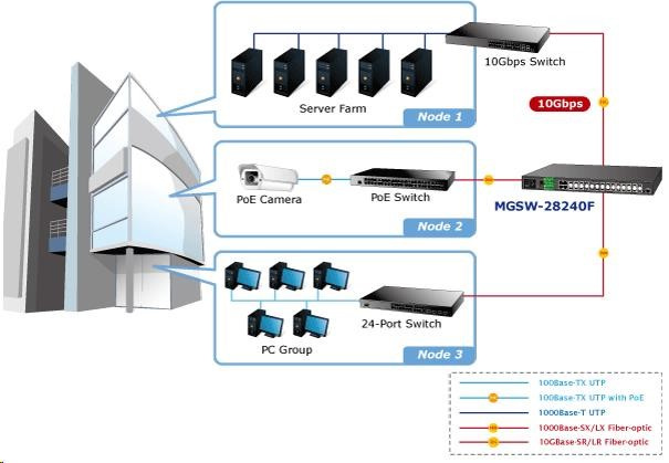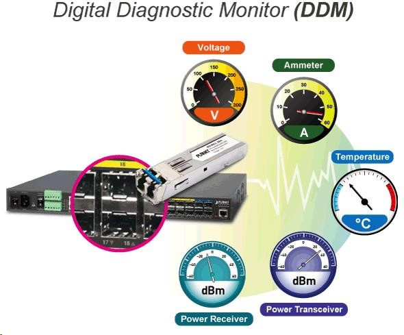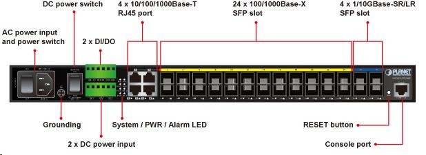 Popis Planet MGSW-28240F Metro switch 24x SFP(DDM), 4x SFP+, 4x TP, AC+DC, DI/O, Web/SNMPv3, IGMPv3, IPv6