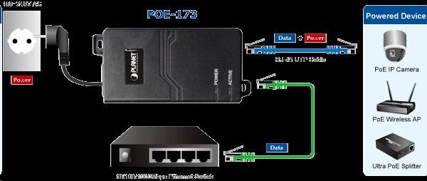 Popis Planet POE-173 Ultra Poe injektor napájení po ethernetu IEEE802.3at/af, 60W, Gigabit