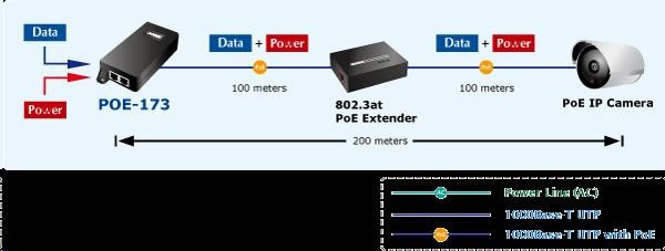 "Power over Ethernet Injector" s maximální zatížitelností až 60W pro napájení zařízení po ethernetu. Designovaný pro použití s kamerami PTZ, dotykovými monitory, VoIP aparáty nebo WiFi přístupovými body. Napájení PoE lze realizovat i na gigabitovém ethernetu, napájení se přenáší po všech vodičích UTP/FTP ethernet vedení, injektor podporuje IEEE 802.3 / 802.3u / 802.3ab, 10/100/1000Base-T. Injektor je kompatibilní s IEEE 802.3af / 802.3at. Pokud napájené zařízení nemá možnost být napájeno pomocí PoE IEEE802.3at nebo chcete naplno využít výkonu injektoru, musíte použít spliter POE-171S. Máte-li zařízení které je možno napájet přes PoE 802.3af/802.3at, takové lze připojit k injektoru přímo. Info: Rozhraní: 2x Port RJ-45: 1x Data + Power output a 1x Data input IEEE 802.3af/at, 50V/DC na vedení, zatížitelnost až 60W Napájení: interní zdroj 100-240V/AC Rozměry: 115 x 62.5 x 31 mm Hmotnost: 177g.