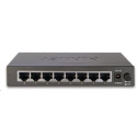 Gigabitové přepínače v miniaturním provedení pro stolní použití. Mají plnou propustnost, jsou neblokující, vybaveny architekturou Store and Forward. Rozměry jejich kovových skříněk dovolují jejich umístění do malých 10" rozvaděčů či nenápadné uložení kdekoliv. Vlastnosti: 8 portů 1000Base-T, Switching, Full Duplex (1000/2000 Mbps), Auto-Negotiation (10/100/1000 Mbps) Auto-MDI/MDI-X, automatická detekce přímý zkřížený kabel i pro 10/100Mbps 8k MAC adres; propustnost: sběrnice 16Gbps, provozně 11,9Mp/s podpora přenosu Jumbo rámce 9KB pole LED indikátorů pro diagnostiku provozu provedení pro instalaci na stůl rozměr 155 x 86 x 26 mm, hmotnost 370g energeticky effektivní ethernet zařízení (EEE) podle IEEE 802.3az, Energy-using Product (EuP) externí napájecí zdroj: 12V DC (110-250V/50Hz AC), příkon do 5,5W.