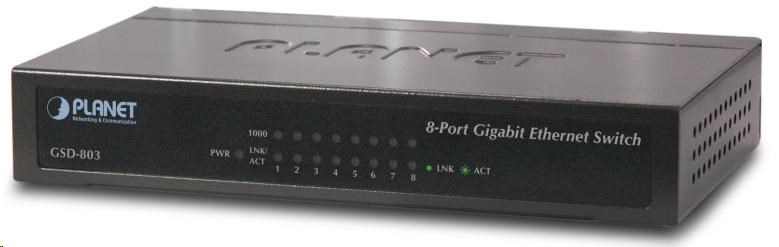 Popis Planet switch GSD-803 10/100/1000 (8X1000BASE-T), EUP, 802.3AZ, kov